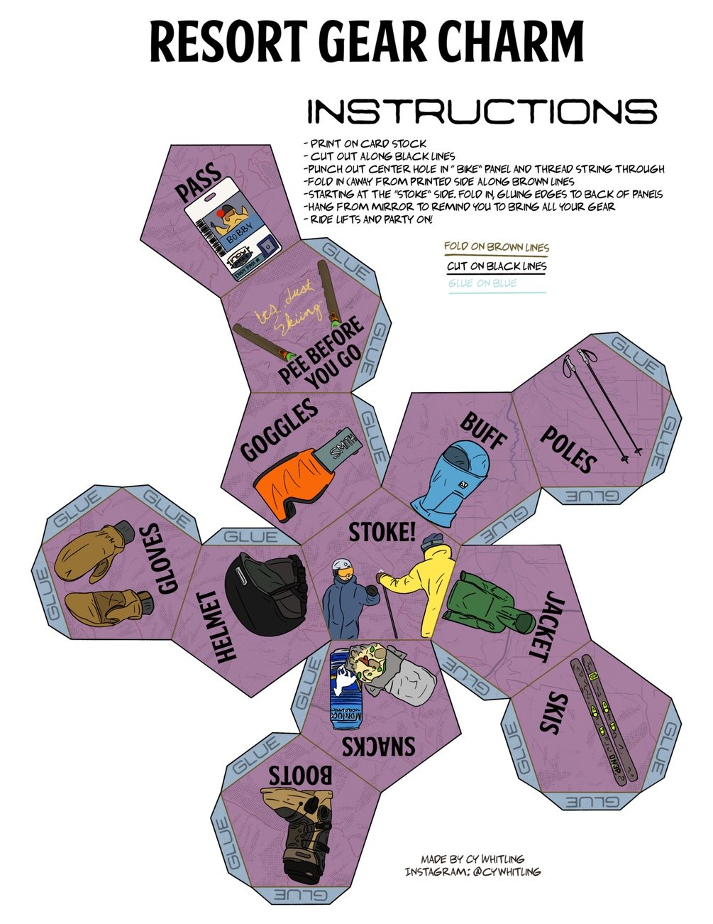Print off these charms, cut them out, and follow the instructions to assemble. Then hang them somewhere where they'll help you remember those little pieces of gear you always forget.